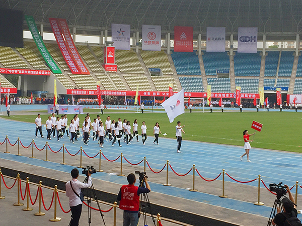 18日早上8点,承翰健儿们就到达了深圳体育场,他们身着统一的运动服装在为各自的比赛做赛前热身。随后,身穿白色企业文化衫前来观赛的承翰人也陆续到达赛场。在3号看台,承翰人热情地挥舞着手中的小旗,组成了一个青春洋溢、活力四射的小方阵。在各项田径比赛正式开始前,大会进行了参赛企业入场式,承翰方阵以整齐的白色T恤衫搭配黑色运动裤与白色运动鞋,在旗手的引领下,映入全场眼帘,赢得一片掌声!