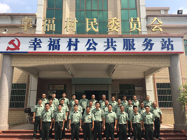 7月31日上午10点,在承翰集团惠州分公司总经理助理翁国琪和幸福村村委书记刘育灵的带领下,曾经的祖国军人再一次穿上戎装,在幸福村委大楼下列队,神采奕奕,精气十足,仿佛又回到了那激情燃烧的军旅生涯。整齐划一的绿军装和井然有序的队列是湛蓝天空下的一抹亮丽风景。